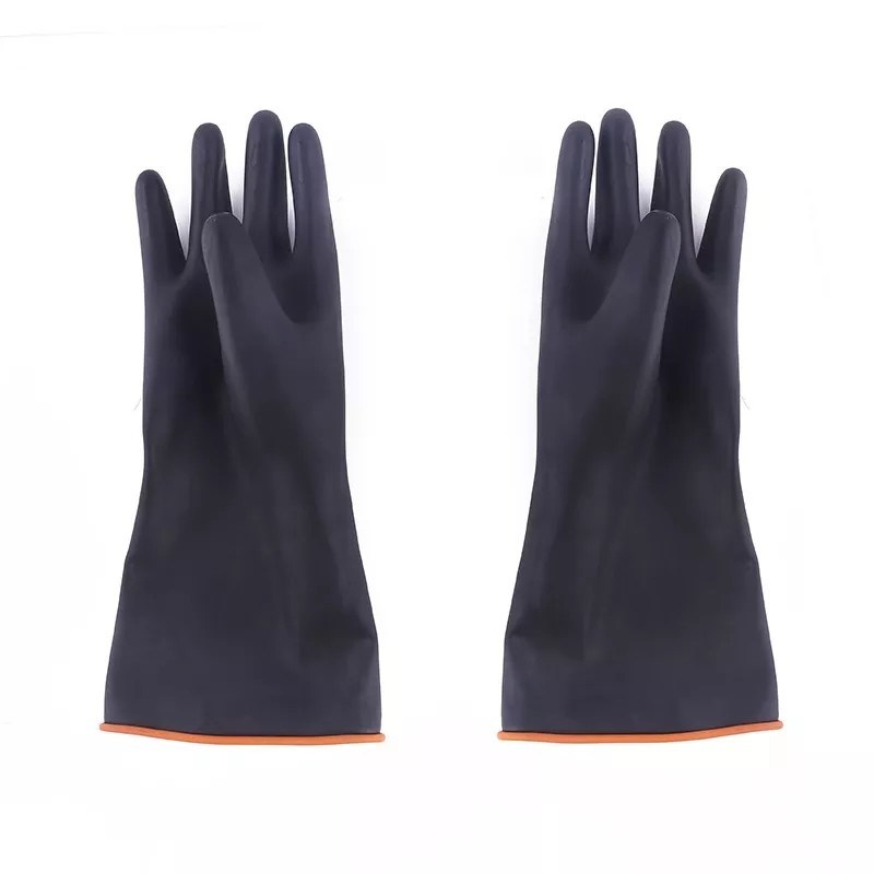قفازات مطاطية صناعية سوداء مقاومة للحمض ، بطانة برتقالية شديدة التحمل